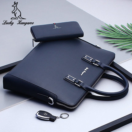 3分钟前幸运袋鼠男包商务包男士手提包公文包 - 黑色大号无手包